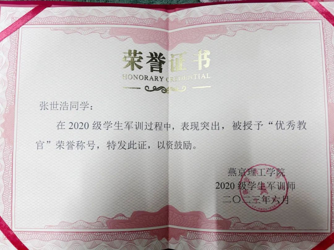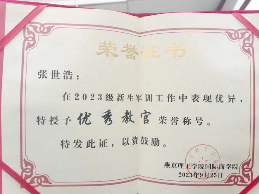 退伍后,张世浩同学学习态度积极,珍惜学习机会,努力提高自己的专业知识和技能,有较强的时间管理能力,继续保持着部队的规律生活,合理地安排了学习和生活时间。在校期间担任燕京理工学院国防后备营副营长、国际商学院团总支社会实践部副部长、微光志愿服务社团社长,在校期间多次被评为军训“优秀教官”、荣获“优秀共青团员”、“优秀学生干部”、“优秀志愿者”等荣誉称号,并荣获校级奖学金。他用自己的实际行动为同学们做出模范。