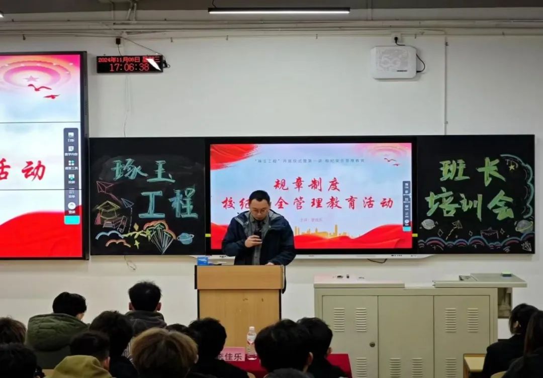 为全面提升新一届学生干部的综合素质,塑造学生干部踏实、负责的工作态度,确保各项学生工作持续高效推进,增强各班班委之间的协同合作与自我驱动能力,11月6日,国际商学院“琢玉工程”开班仪式于D102举行。国际商学院学生会指导老师李佳乐、团总支书记戴红妹、宿管会指导老师徐霞、2024级全体辅导员老师以及2024级学生干部代表参加此次活动,活动由戴红妹老师主持。