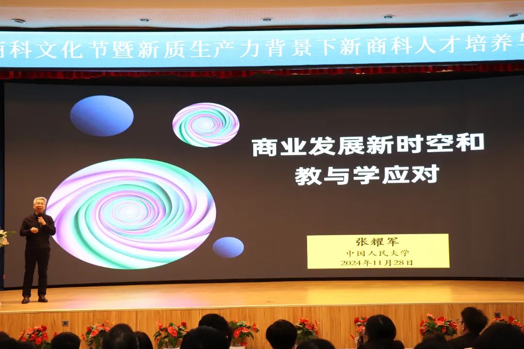 (张耀军教授作题为《商业发展新时空和教与学应对》的报告)