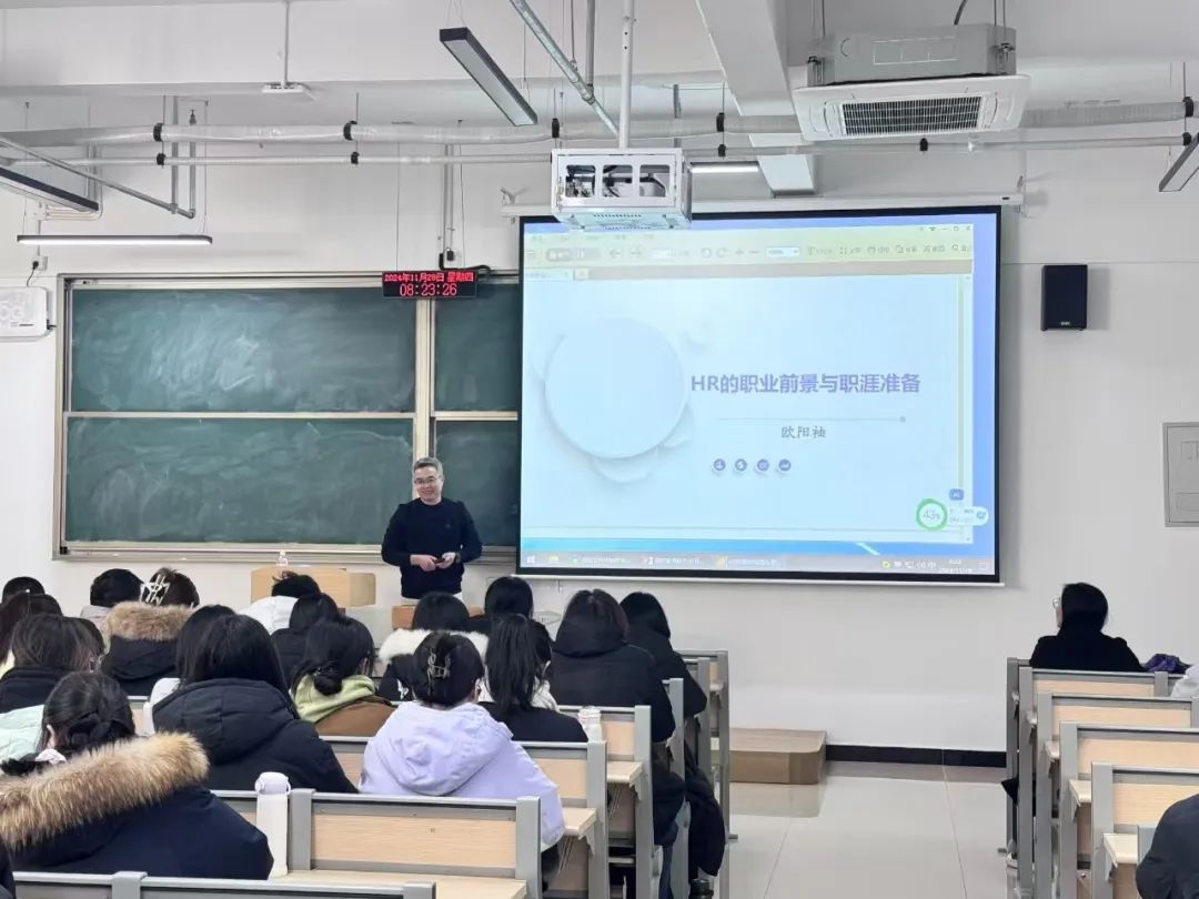 人力资源管理专业平行会场邀请欧阳袖教授作题为《HR的职业前景与职涯准备》的专题报告。欧阳教授围绕就业保有优势、薪酬相对优势、发展机会较多三个方面对HR的职业前景特点进行了说明。欧阳教授表示,人力资源管理专业学生的知识层面需进行系统化储备、技能层面需进行创造性转化、素质层面需进行刻意化锤炼,希望在学院的教育教学下,人力资源管理专业的同学们能拥有更加广阔的前景。