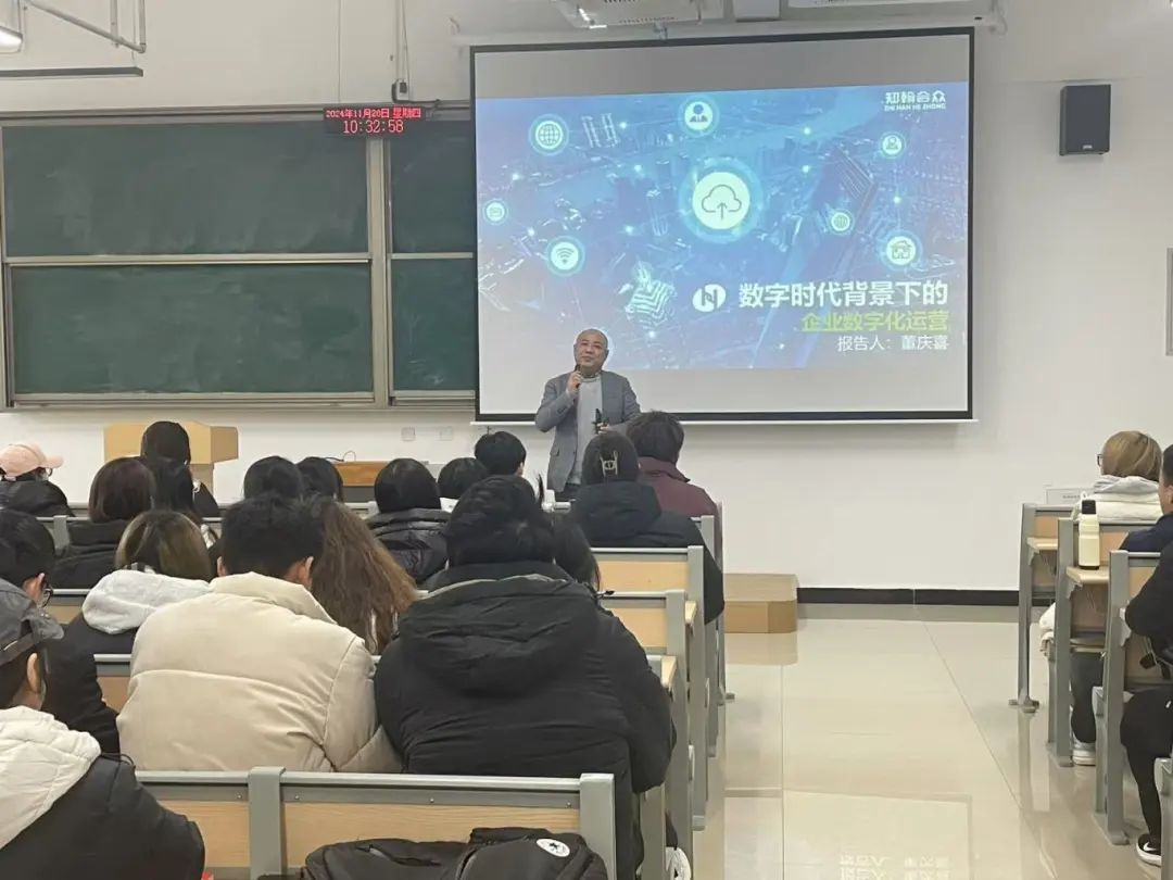 董庆喜总经理在工商管理专业平行会场带来了以《数字时代背景下的企业数字化运营》为主题的报告。董总从客观的角度深入解读了国家各省市、各行业数字化建设整体布局规划和措施行动,并以大量的案例分析了企业数字化运营解决管理决策、信息共享、需求匹配、异常检测和自动控制等痛点的问题。最后,董总针对数字化人才培养和大学生就业等方面,回答了同学们的相关问题。