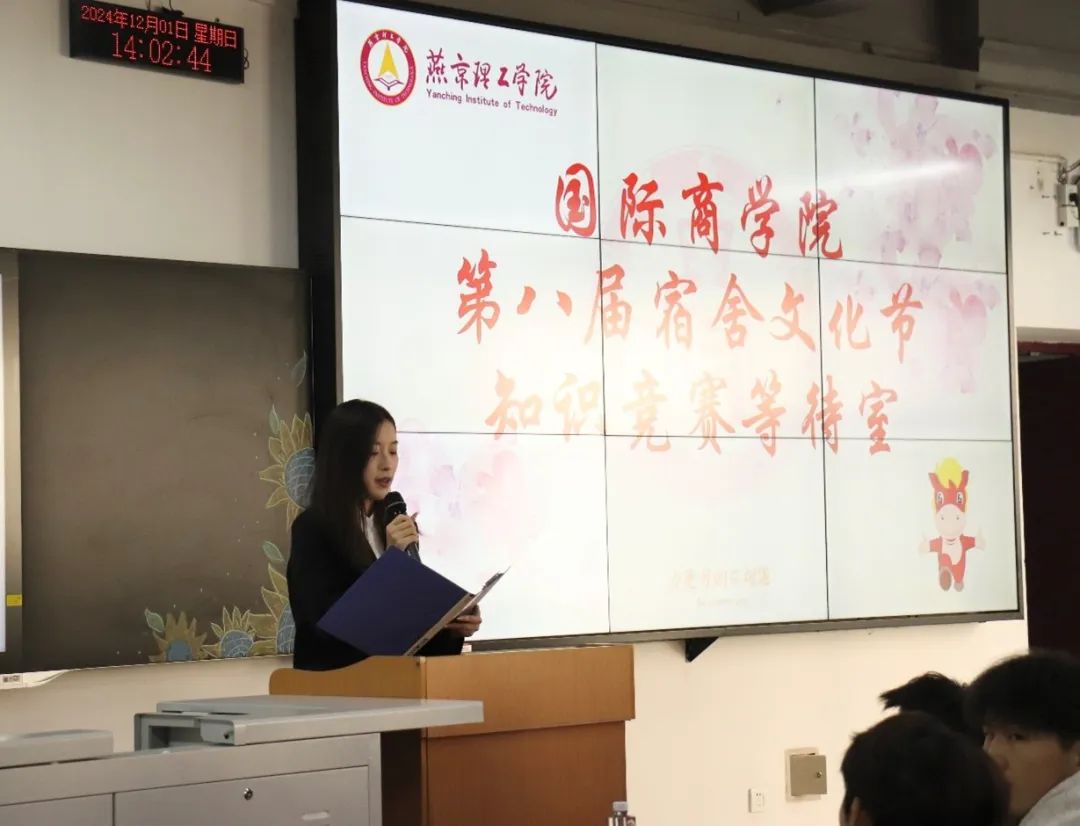 国际商学院第八届宿舍文化节复赛正如火如荼的进行中,而常规赛道的投票评比环节已然落幕。12 月 1 日,国际商学院宿舍文化节知识问答竞赛于综合楼 101、102 举行。此次竞赛共有9 支参赛队伍同场竞技,同学们在比赛现场各展风采。
