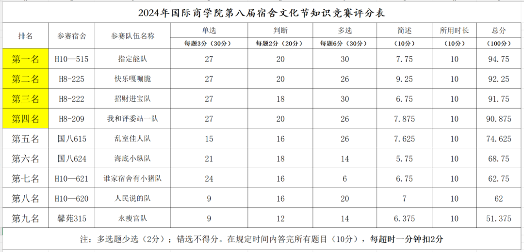 (2024国际商学院第八届宿舍文化节知识竞赛评分表)