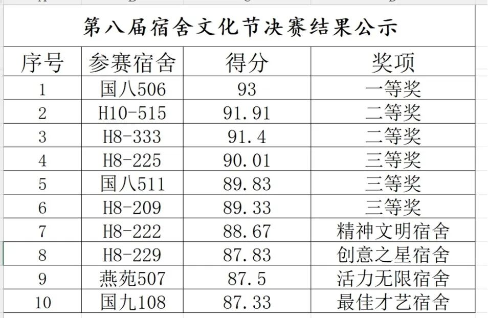 本次比赛评分采取将各位老师评分汇总、去掉一个最低分和最高分取平均值的算法,经过工作人员的仔细计算,算出得分和排名,并由嘉宾老师为获奖宿舍颁发荣誉证书。