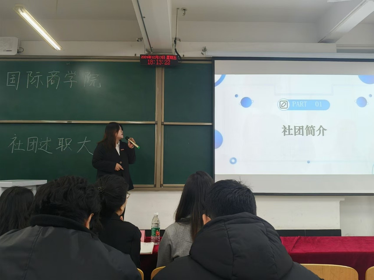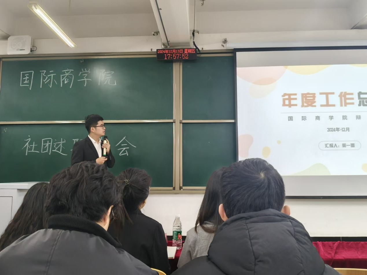 (国际商学院辩论社汇报人进行工作汇报)