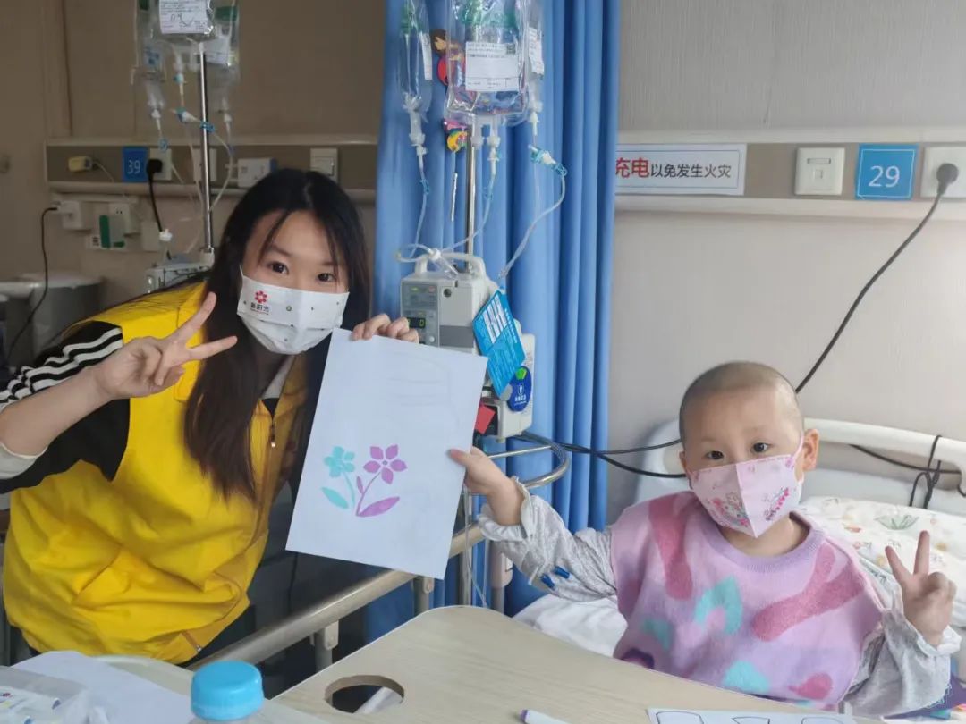 在燕达医院的白血病房里,一场以“花瓶里的春天”为主题的绘画活动正温馨展开。志愿者们贴心地为小朋友们准备了丰富的绘画工具和可爱的小礼品,通过询问小朋友们的喜好迅速拉近了心灵距离。在绘画过程中,志愿者们细心观察每个小朋友的创作,不时地给予鼓励和建议。他们弯下腰,耐心地指导小朋友们如何调配颜色,如何表现出花朵的层次感和质感。