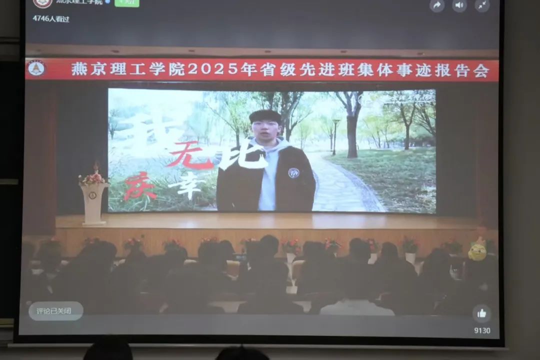 为培养学生良好的道德情操和正确的价值观,激励学生学习楷模、积极向上,深化我校学习先进、做优秀学生、争创优秀班集体的一贯教育模式,3月26日,燕京理工学院2025年省级先进班集体事迹报告会于报告厅举办,并于K1楼、K2楼设置了20个分会场,其中国际商学院获奖班级学生代表及2023级、2024级学生班委代表于教学楼K1-514分会场集中观看,其余师生通过学校官方直播平台线上参与。