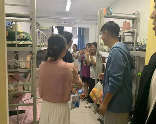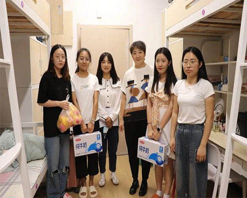 下午,国际商学院党总支书记贾思博,专接本新生辅导员何时雨、苏然然和张晓文老师带着牛奶和水果一起去宿舍看望了新同学,并向同学们表示了热烈的祝贺和欢迎。晚上,商学院在教学楼为新同学们准备了一场欢迎会,让同学们感到了燕理特有的温暖,燕京理工不仅仅是一个学习和实现梦想的地方,更是一个大家庭。