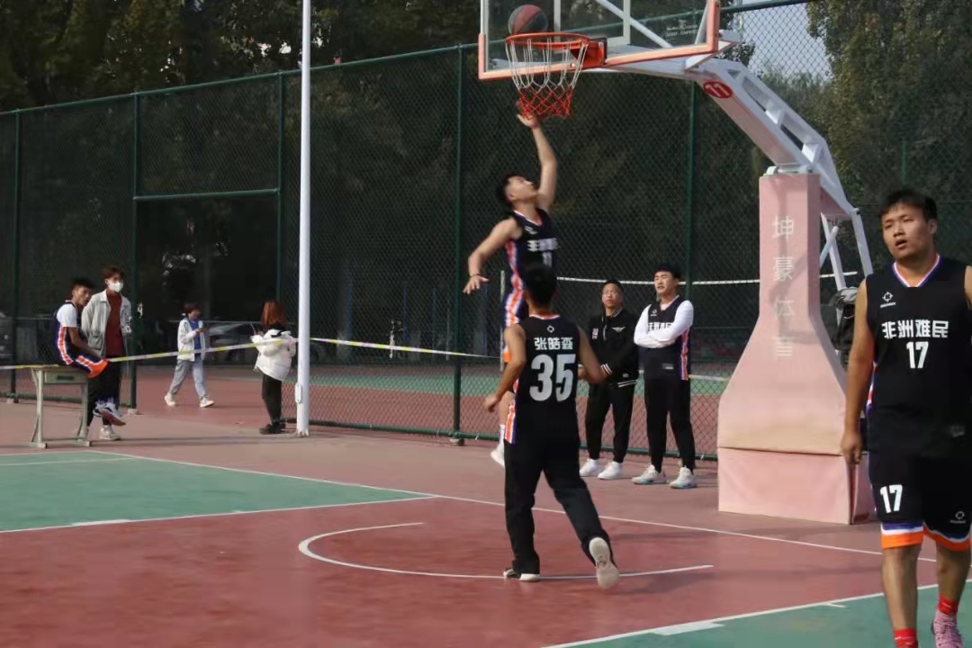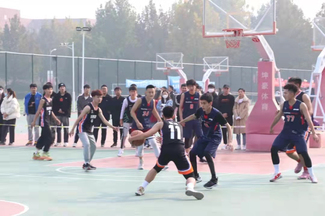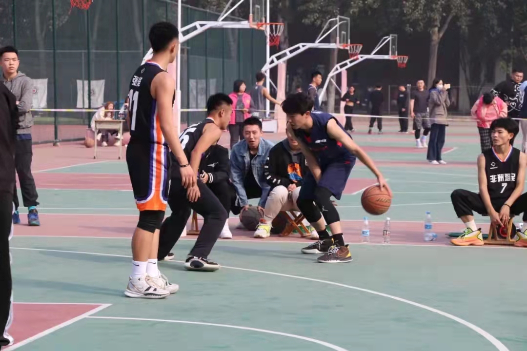 比赛进行得如火如荼,大家热情澎湃,尽情在球场挥洒汗水。场外加油声、呐喊声此起彼伏,为球员加油,更为球赛增添激情。在下半场比赛中,赵泽芳老师所带球队也不甘示弱,仍紧追不舍,顽强拼搏。李军冲老师所带领的大一新生队伍逐渐找回状态,渐入佳境,虽比分落后,但凭借“初生牛犊不怕虎”的冲劲儿,以不抛弃、不放弃的恒心与毅力,运球、传球、持球突破,最后以一个帅气的三分球结尾,追回一定比分,展现出了新国商人的风采。