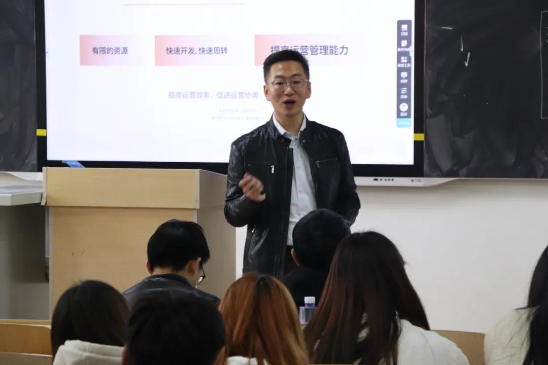 为加深大二学生对所学专业的了解和认知,培养专业精神,11月3日,国际商学院于M209开展“企业经理人进课堂”活动,诚挚邀请企业经理人孟祥熙进管理学课堂,为2020级大数据管理与应用专业学生讲解“百年大变革下的房地产转型管理”专业导论课。此次活动由赵娜老师主持。