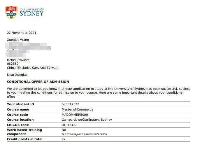 我校会计学院王雪乔同学、传媒学院陈泽龙同学分别获得悉尼大学(2021QS世界排名第38)商务和项目管理专业的Offer。