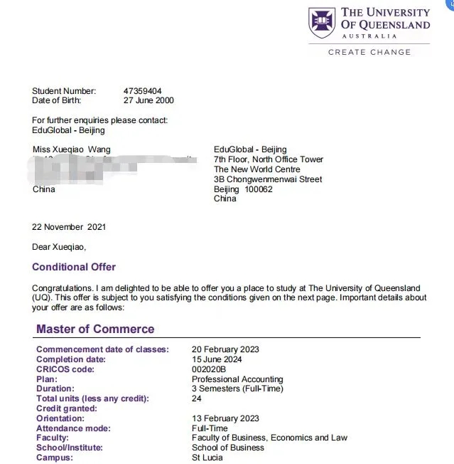我校国际商学院陈佳琪同学获得麦考瑞大学(2021QS世界排名第200)专业会计专业的Offer。