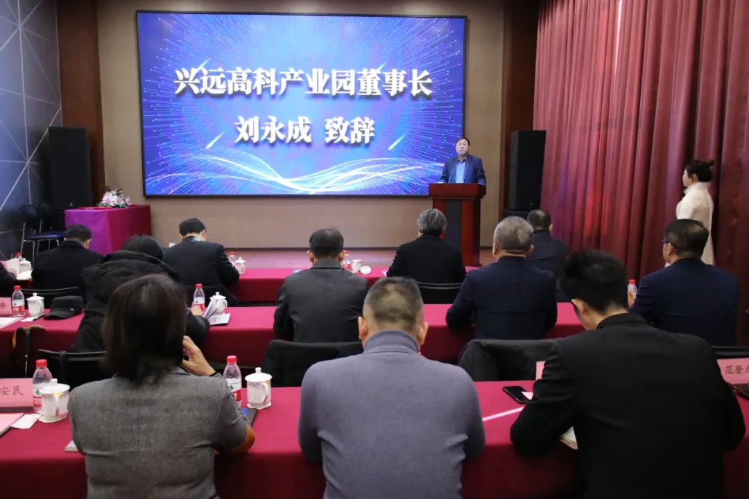 仪式伊始,兴远高科产业园刘永成董事长致辞,他表示成立燕兴商学研究院是兴远高科产业园与燕理多年的校企合作的基础上,为进一步深化产教融合而提出的,研究院名称取自燕京理工学院和兴远高科产业园首字组成。燕兴,寓意在燕赵大地共繁荣。