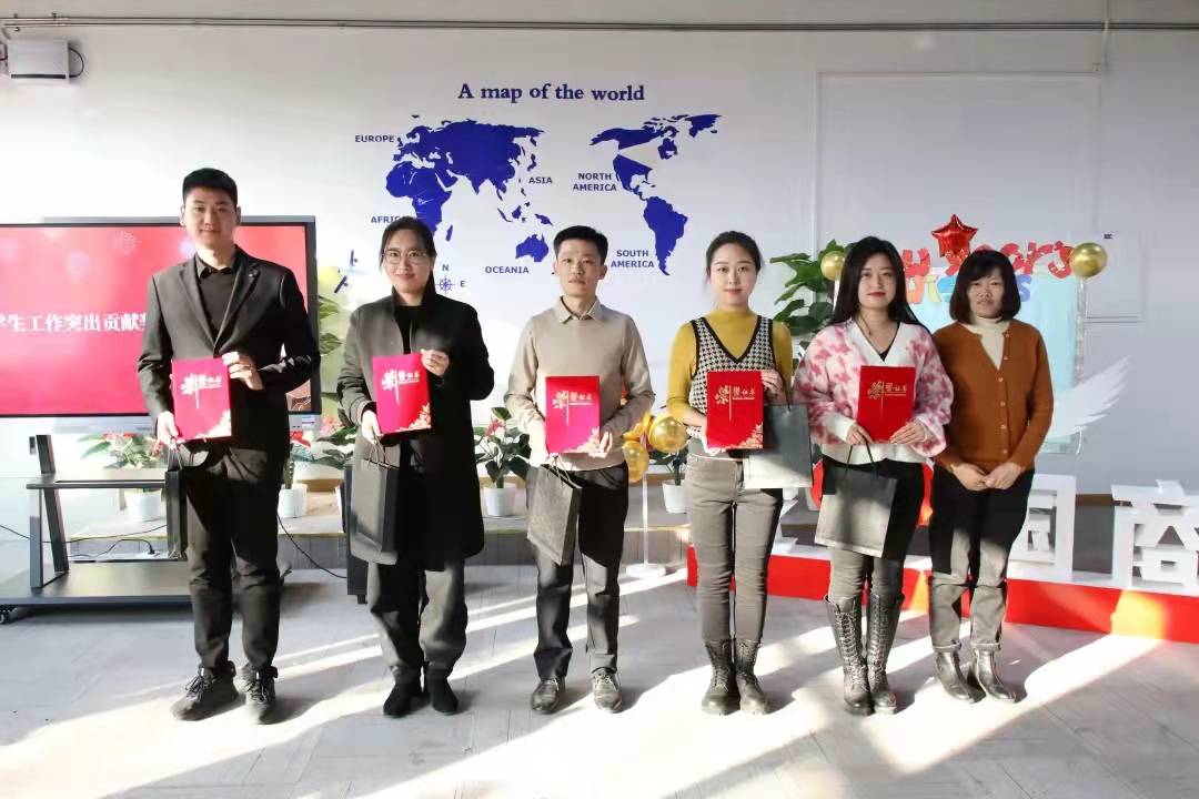 国际商学院院长廉国恩、党总支书记贾思博、副院长张琪分别为获得年度学生工作突出贡献奖和最受学生喜欢老师共15位老师颁奖。