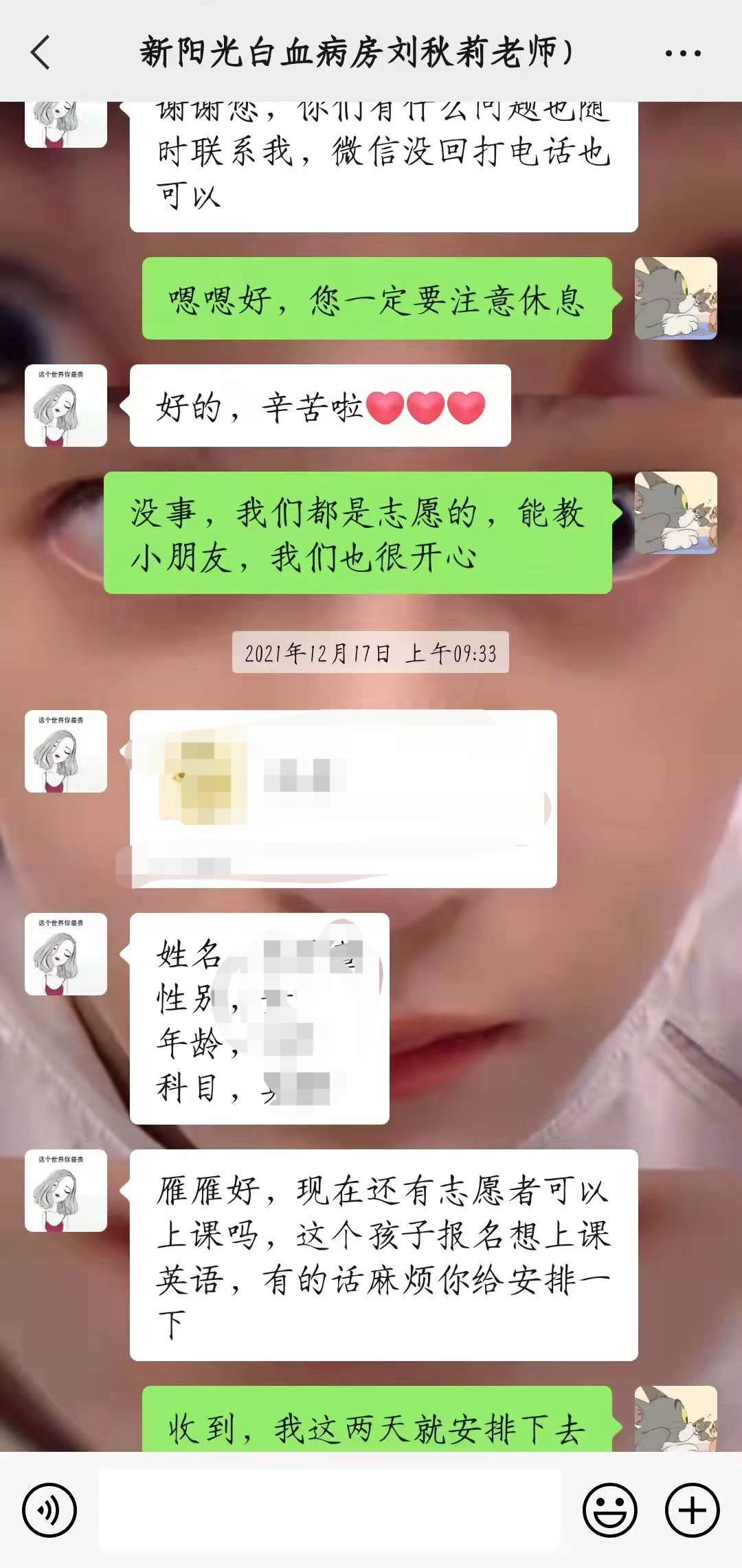 “新阳光白血病房线上授课”从2019年10月开始筹备,2020年寒假正式开始,至今已坚持一年多的时间了。在学院的领导下,我们采取线上授课的形式,围绕白血病儿童,实时同步白血病儿童课程情况,在学院所有学生中严格选拔了一批学习成绩优秀并且具有高度责任感的优秀志愿者,正式接过了这支爱心公益的接力棒。