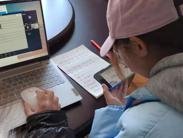 (志愿者为孩子们布置课后作业,解决线上授课不能及时复习的弊端)