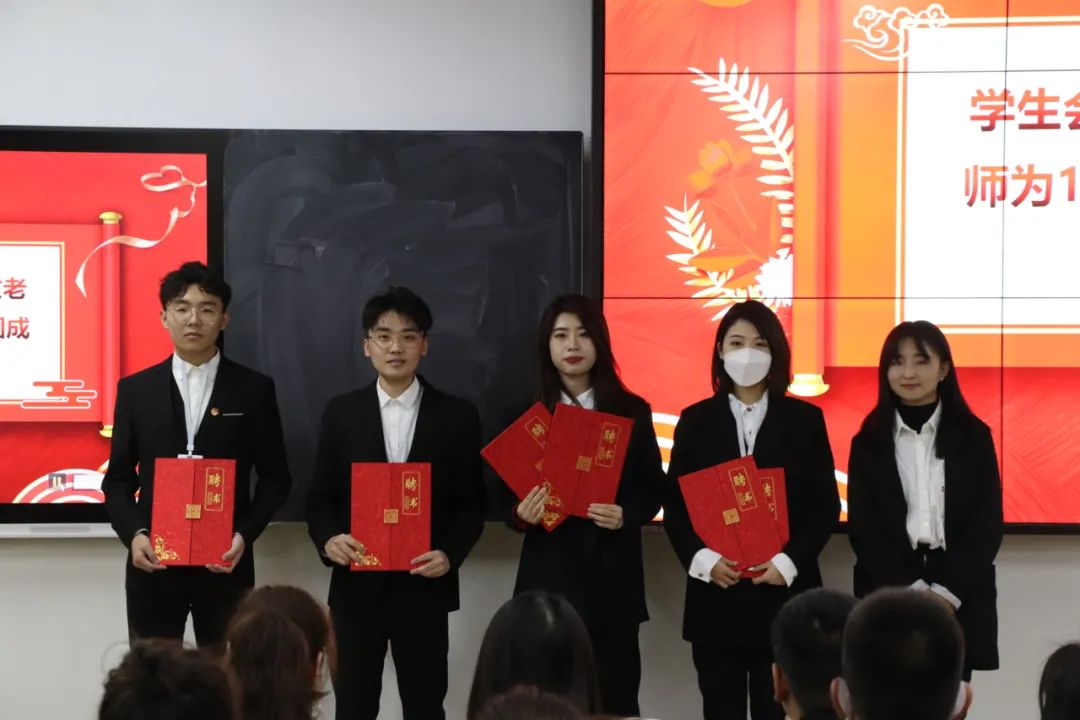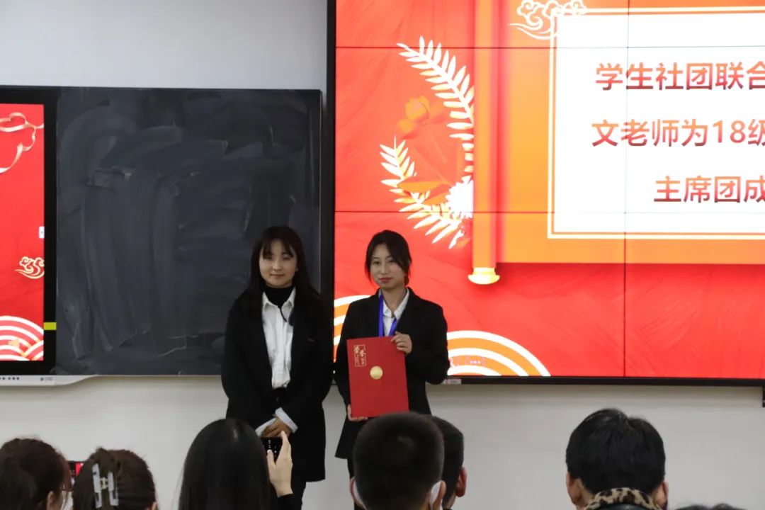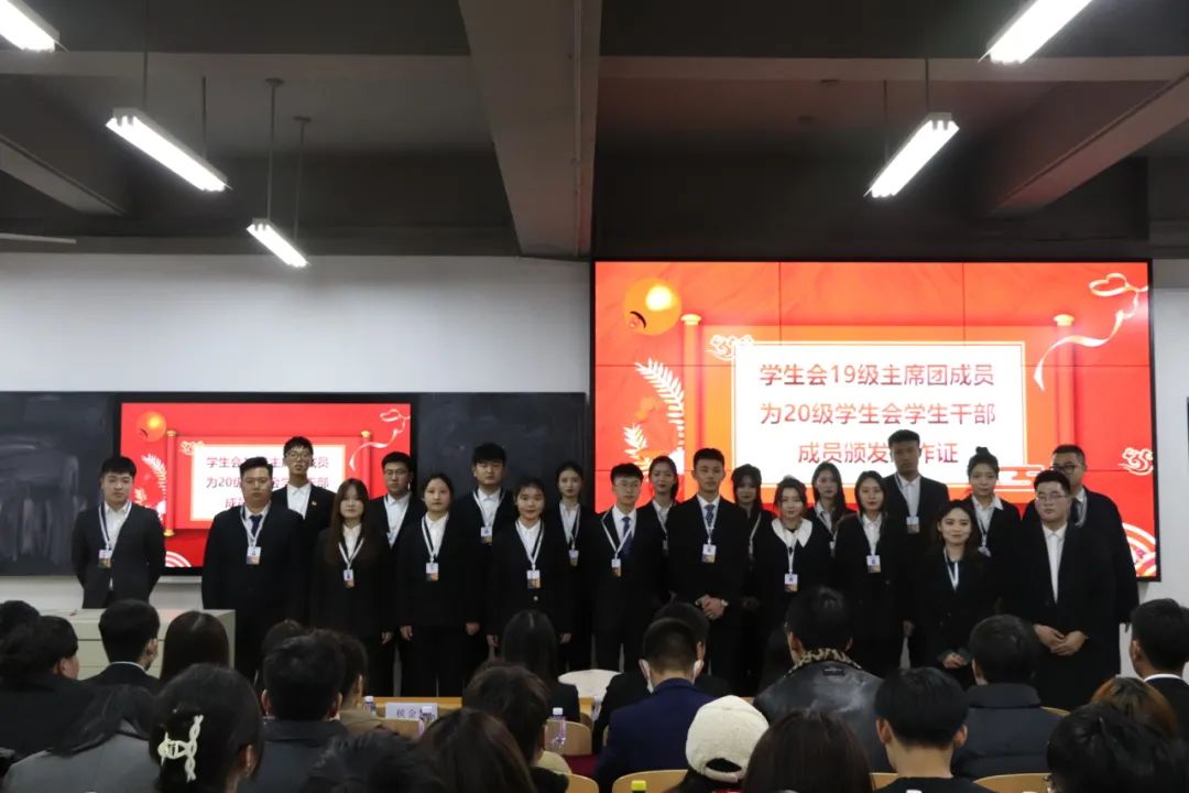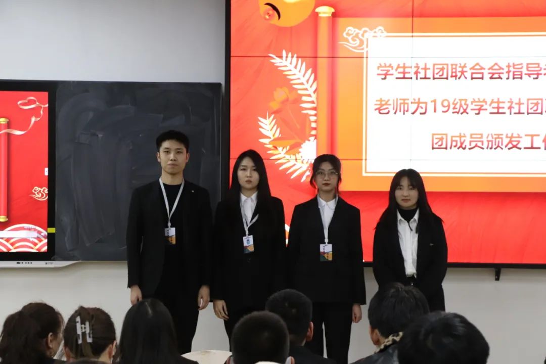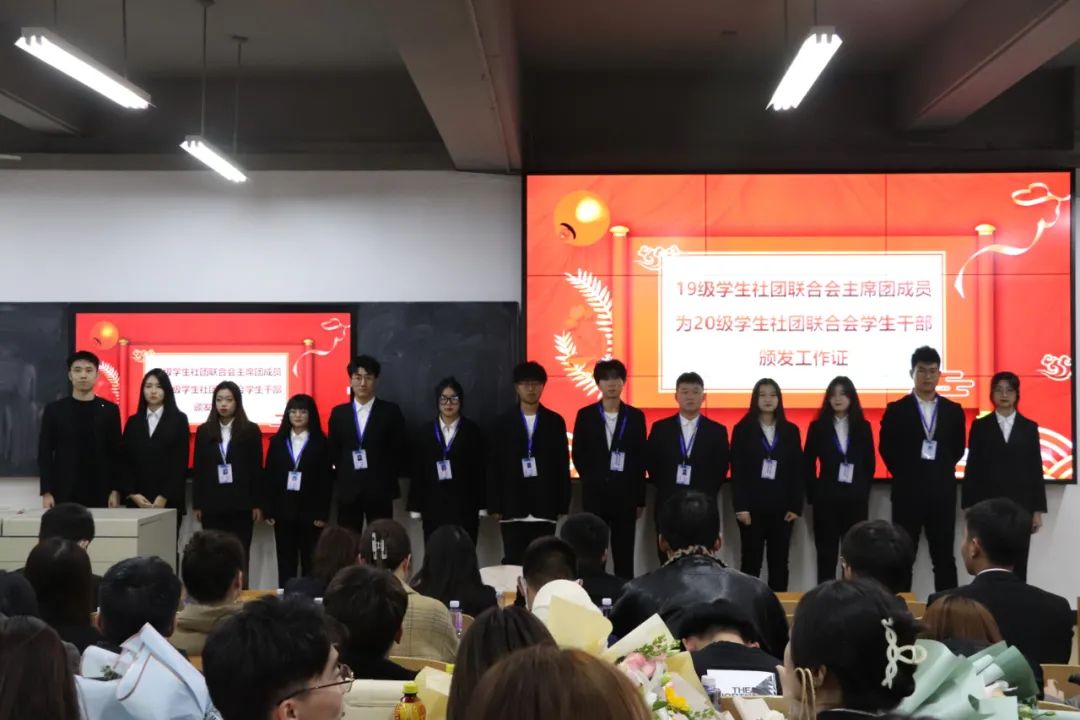 ▲学生社团联合会19级主席团成员为20级学生干部颁发工作证