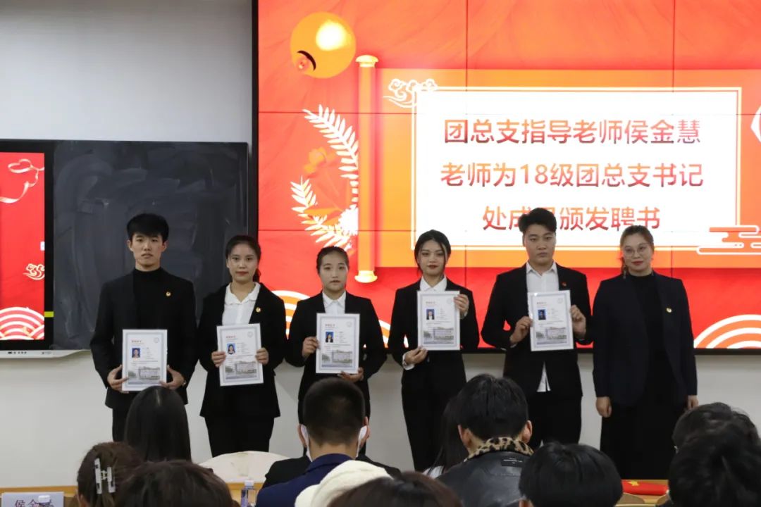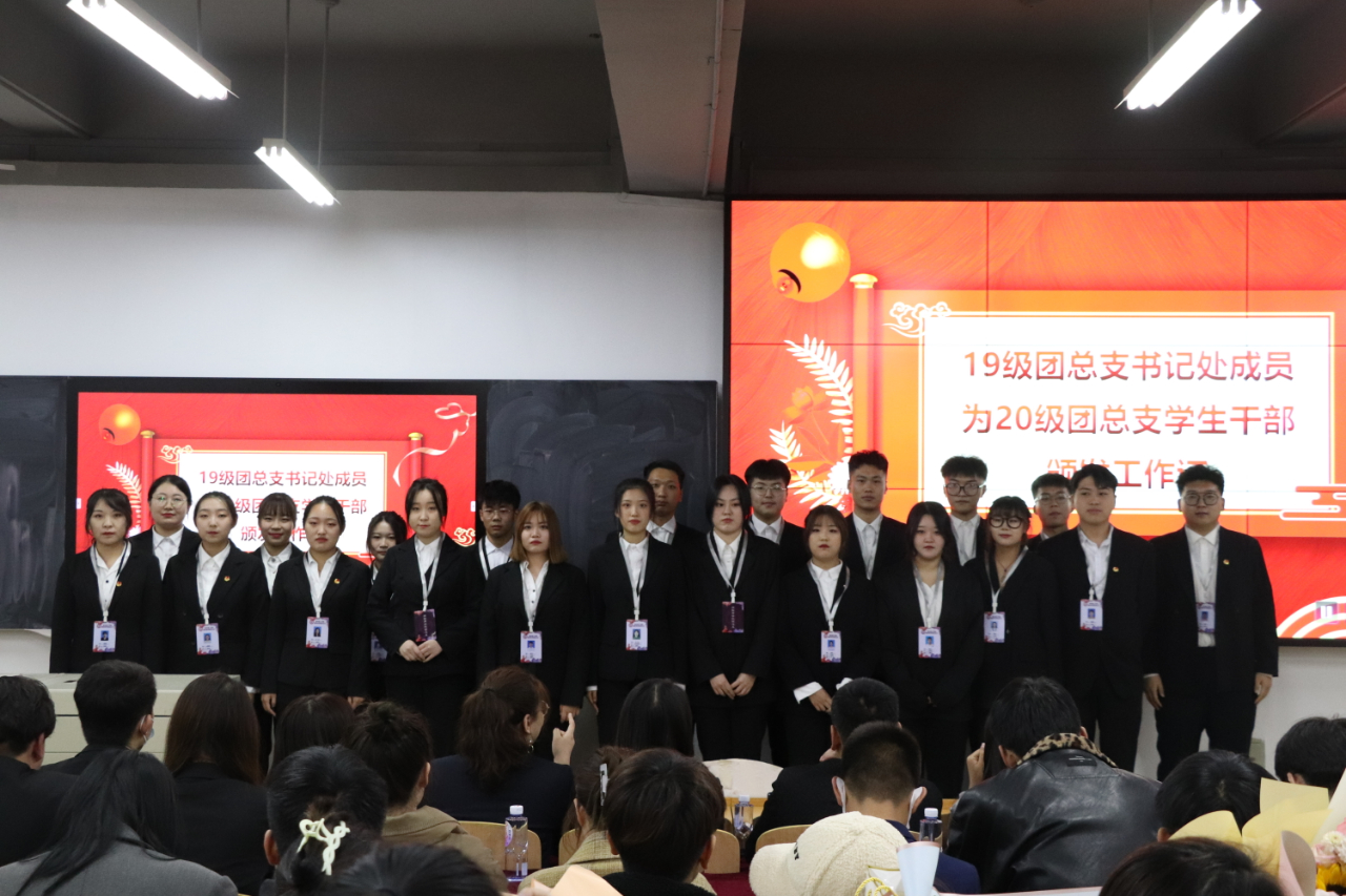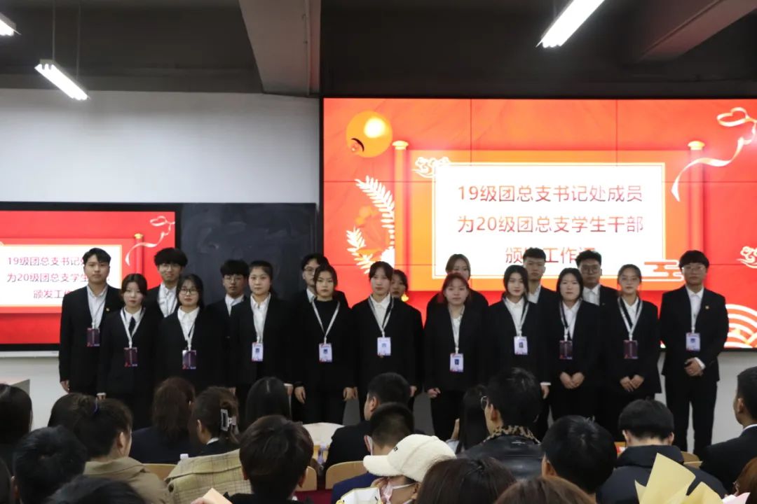 ▲19级团总支书记处成员为20级学生干部颁发工作证