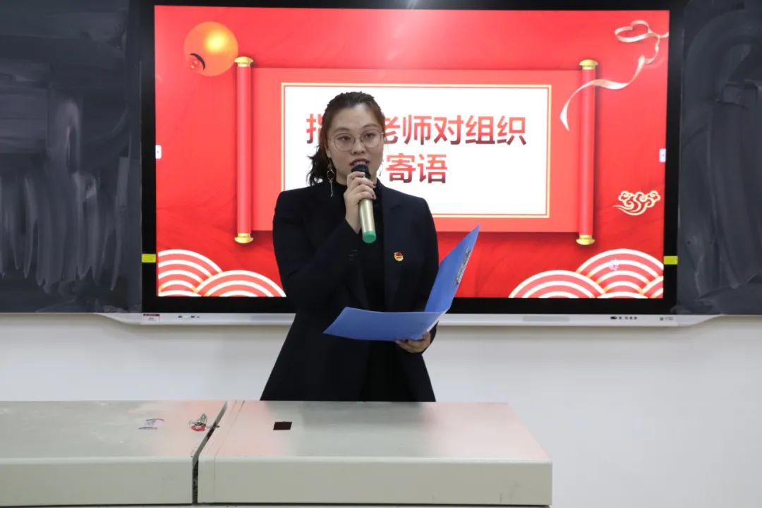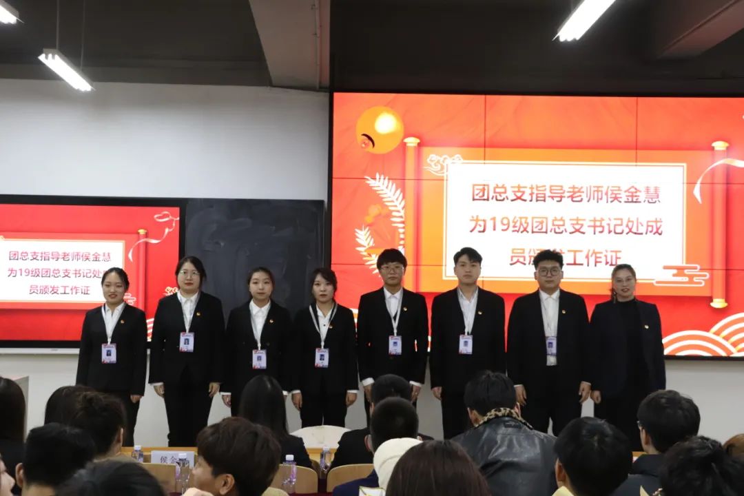 ▲侯金慧老师为19级团总支书记处成员颁发工作证