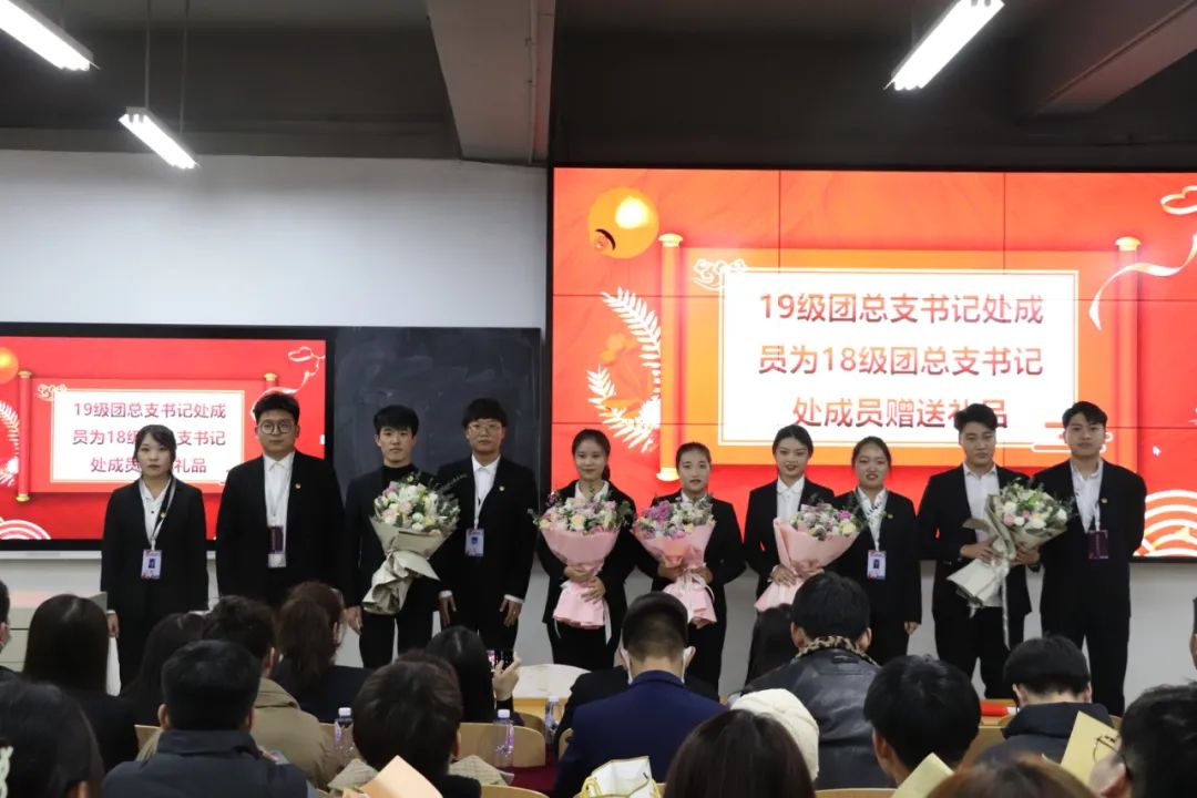 ▲19级团总支书记处成员为18级书记处成员赠送礼物