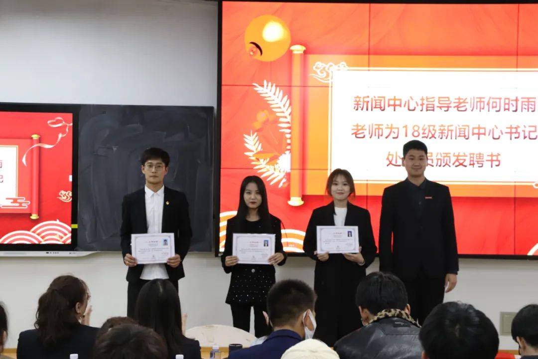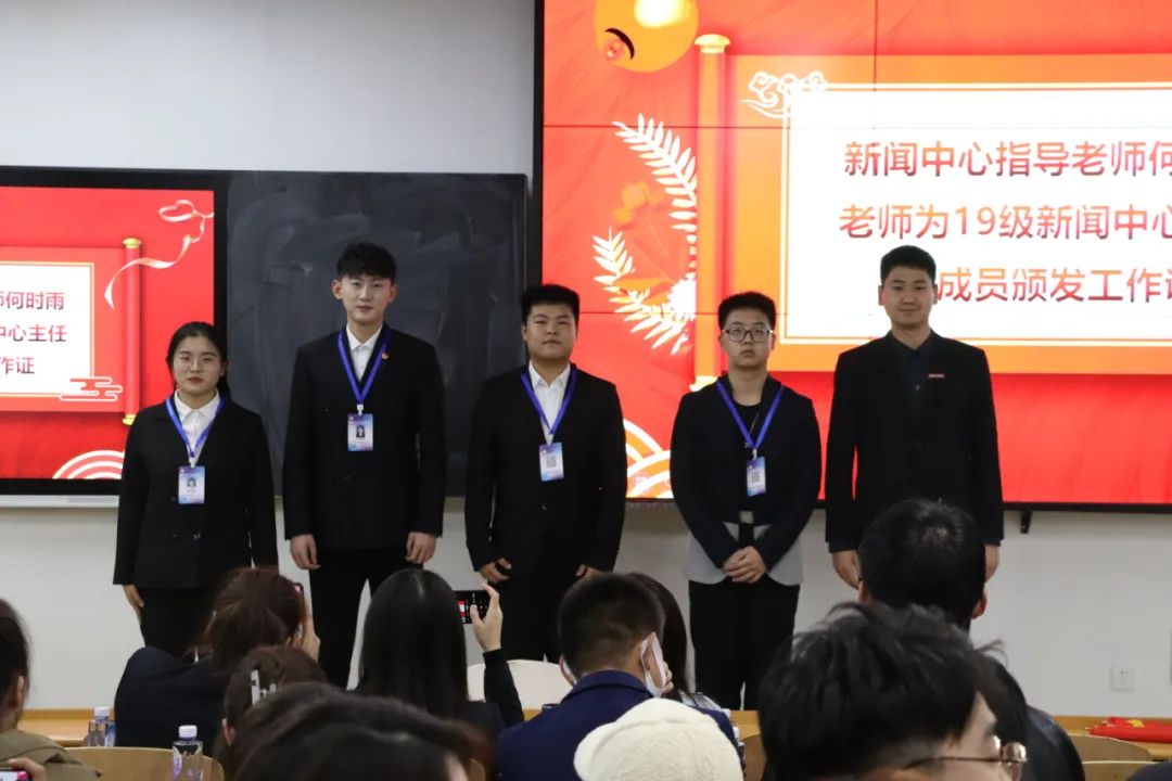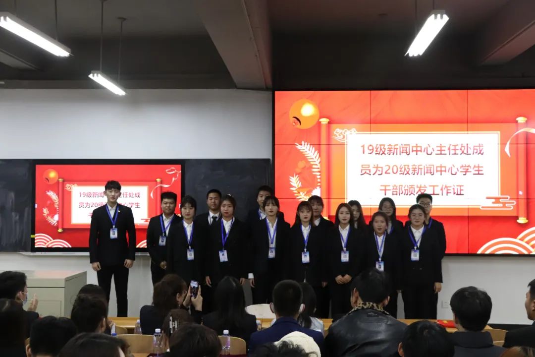 ▲新闻中心19级主任处成员为20级学生干部颁发工作证