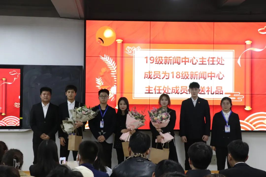 ▲新闻中心19级主任处成员为18级主任处成员赠送礼物
