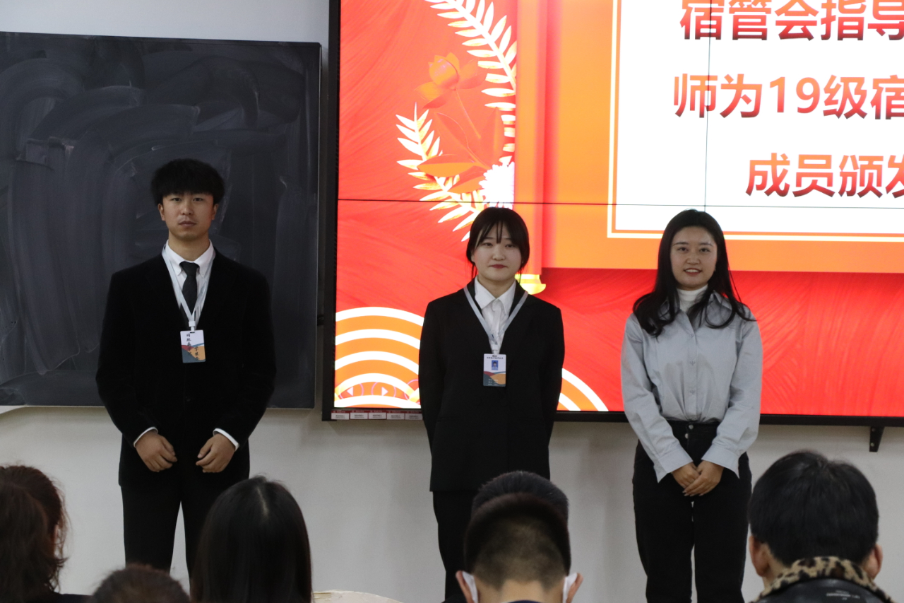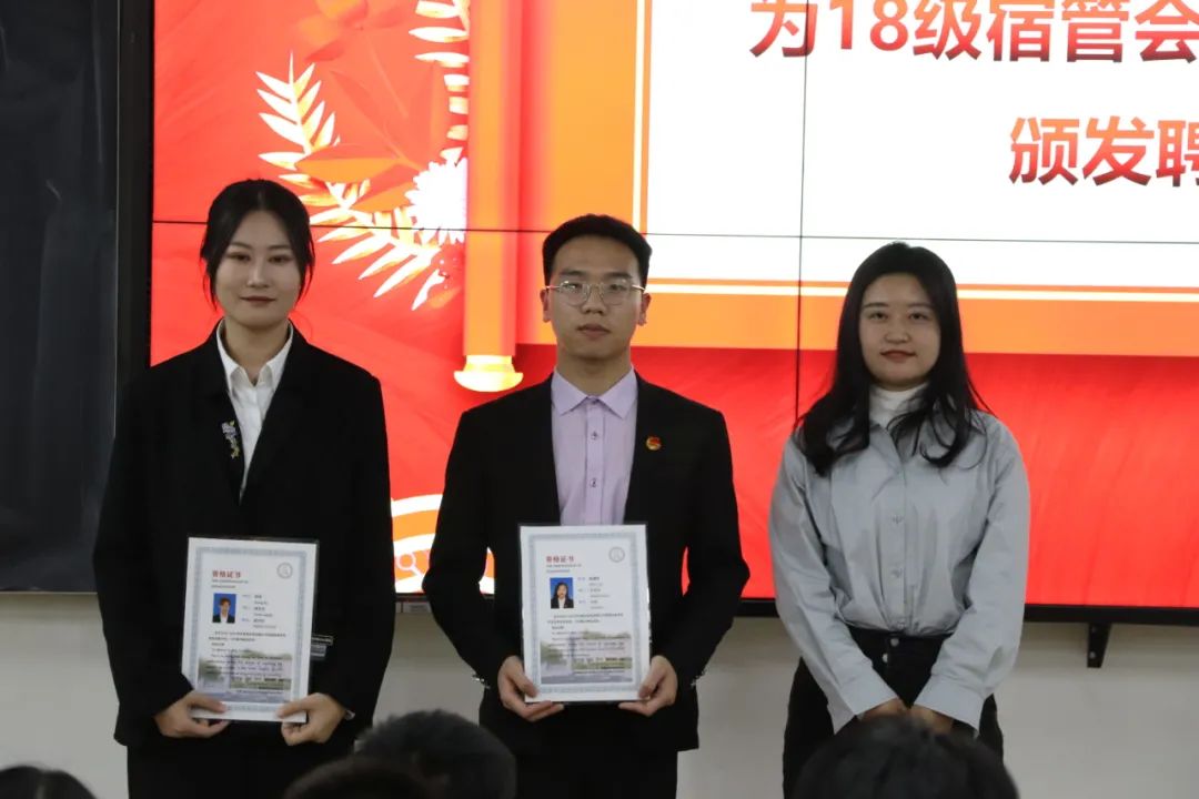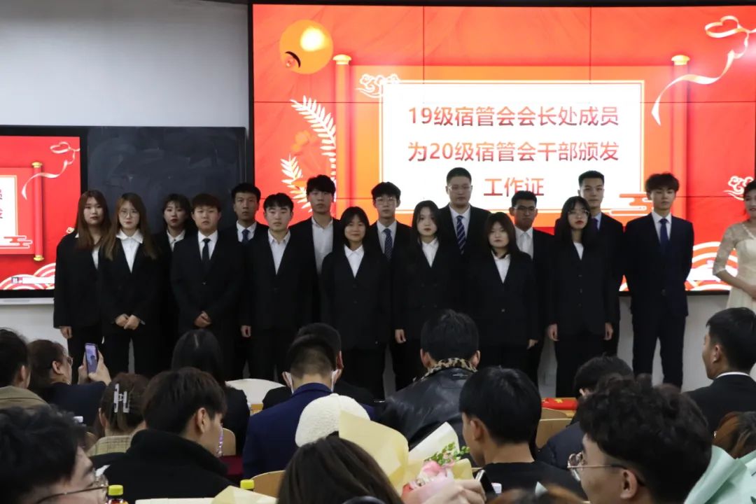 ▲宿管会19级会长处成员为20级学生干部颁发工作证