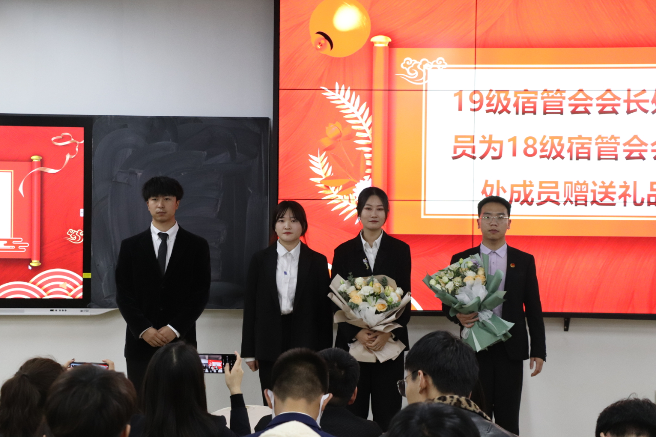 ▲宿管会19级会长处成员为18级会长处成员赠送礼物