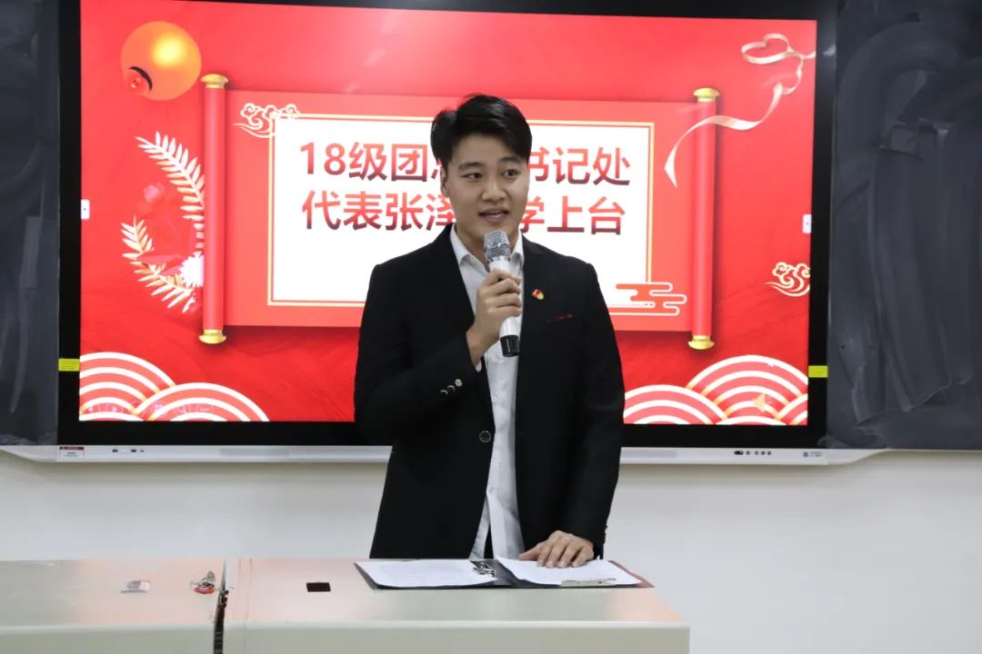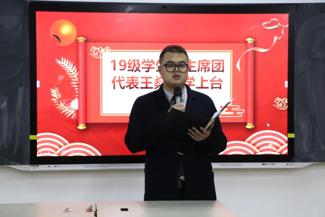 国际商学院18级学生会主席团成员张路康、18级团总支书记处成员张泽、18级新闻中心主任处成员杨烛田、18级宿管会主席团成员周子琪、18级社联主任处成员孙佳琦进行代表发言,他们表示在过去几年见证了大家与燕理的成长,感谢老师及领导的栽培并对新干部们予以殷切的鼓励与期盼,同时也激励新干部奋发图强,最后祝愿燕理和国商学子共同成长。