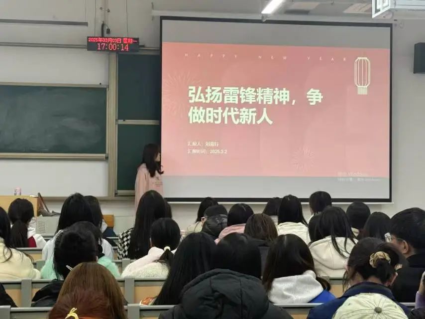 各班团支书还开展了“弘扬雷锋精神,争做时代新人”的主题宣讲会,向同学们详细地阐述了雷锋精神的内涵和影响,“雷锋精神”是理想信念、奉献精神、敬业精神、创新精神和创业精神融为一体的革命精神。在会上同学们畅所欲言,积极发表自己对于“雷锋精神”的理解。宣讲最后团支书某某强调新时代赋予青年新的使命任务。作为新时代青年,我们要传承和和弘扬雷锋精神,坚持以人民为中心的发展思想,坚定理想信念,像雷锋同志那样把有限的生命投入到无限的为人民服务中去。