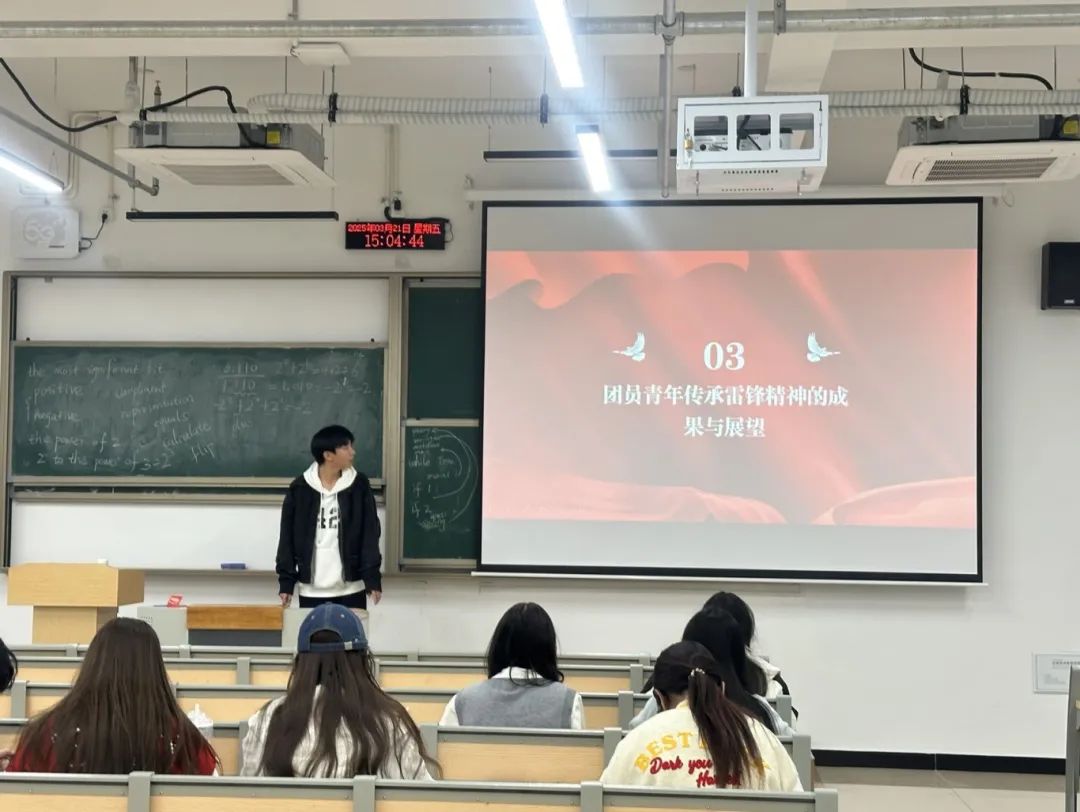 活动伊始,各班团支书带领同学们深入了解雷锋的生平事迹,金科2302班团支书采用PPT展示与视频讲解相结合的方式,带领同学们走进雷锋的世界。团支书特别强调了雷锋精神中的“奉献精神”和“艰苦奋斗精神” 他讲述了雷锋如何省吃俭用,将节省下来的津贴捐给受灾群众和困难战友;在工作中,雷锋是如何以最高的标准要求自己,哪怕条件艰苦,也从不抱怨,始终保持着积极向上的工作态度。从雷锋苦难的童年,到他在工作岗位上的无私奉献,每一个故事都深深打动着在场的每一位同学。