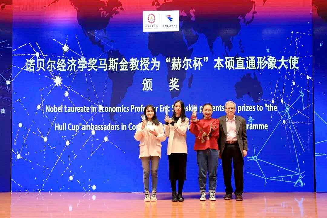 诺奖得主马斯金教授为李凤仙同学颁奖