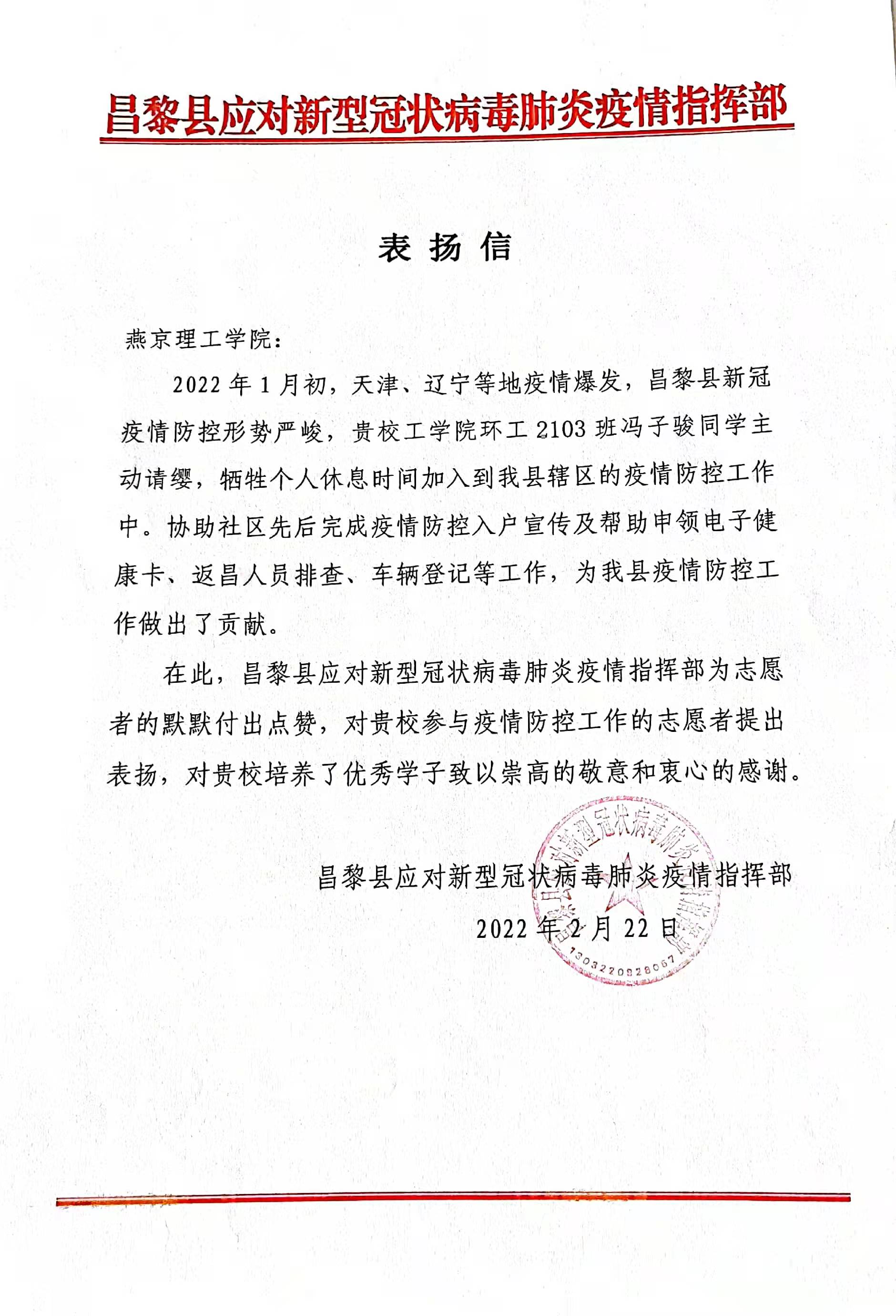 正是在这些学生志愿者逆行向前,对守护人民群众的生命的安全起到了更上一层楼的作用。青春不止眼前的潇洒,更有家国与边关,危急之时,唯有担当方显忠诚。疫情当下,他们秉持“守望相助,生命至上”的理念,用年轻而有力的肩膀扛起不容小觑的责任。疫情防控,没有山海的隔绝,更没有年龄的界限,他们用实际行动体现新时代青年的使命,更体现了燕京理工学院学生的担当。