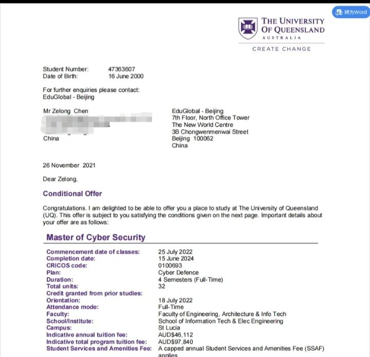陈泽龙同学在大学入学之前就有了海外深造的想法。入学后得知学校开设了海外深造国际班,在听取了辅导员与学校老师的介绍后,了解到了项目大致情况,也清楚了海外深造能给他带来的提升以及他需要付出的努力,于是毅然报名了海外深造项目。虽然疫情让他产生了对留学生活安全问题的担忧,但是他非常清楚出国留学对他职业规划以及个人发展的意义,决定继续向前。