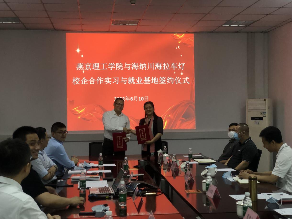 为进一步推进深化产教融合,提高学生的实践能力和就业质量,6月10日下午,燕京理工学院副校长吴汶燕、就业指导与校企合作中心霍德才主任、工学院院长李秋生、副院长刘军凯、科技处科长刘鹏飞以及机械工程专业负责人李靖赴海纳川海拉(三河)车灯有限公司,就联合培养优质人才、深入开展产学研对接、加强人才输送力度等方面与海拉车灯有关领导进行了深入交流并签署校企合作协议。