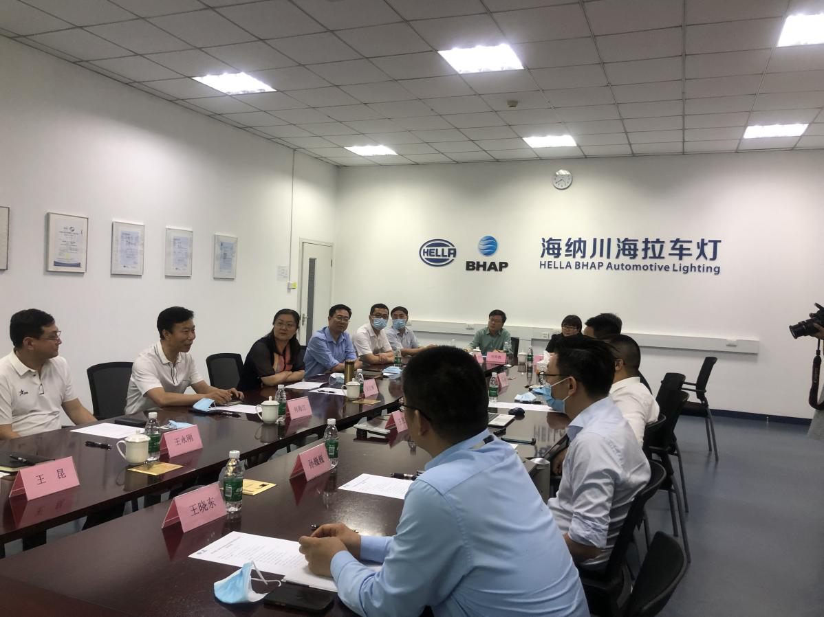 海纳川海拉(三河)车灯有限公司总经理王发浩、副总经理孙巍巍、人事行政总监方舟、技术总监陈方等出席了本次活动;燕郊高新区管委会副主任何海江、燕郊高新区社会事务办公室主任王永刚等领导到会莅临指导。