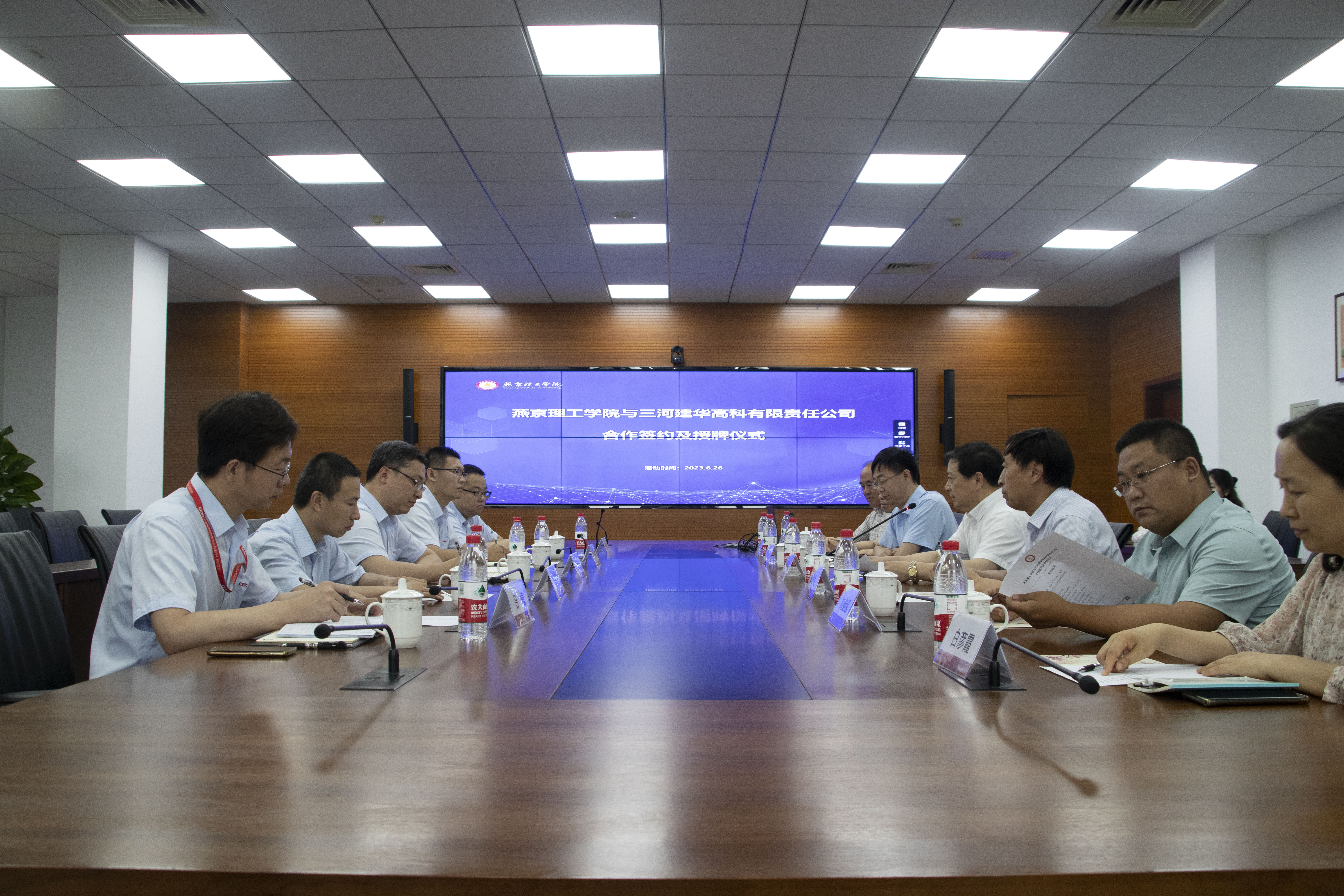 6月28日,我校在综合楼428举行三河建华高科有限责任公司校企合作签约与授牌仪式。三河建华高科有限责任公司总经理段成龙,副总经理吕磊,燕京理工学院校长杨庚宇,智能工程学院与就业指导与校企合作中心负责人等参加此次会议。会议由就业指导与校企合作中心主任霍德才主持。