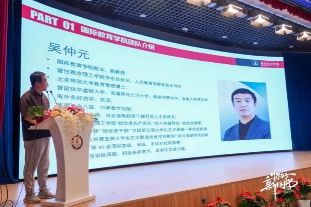 接下来,国际教育学院吴仲元院长介绍了国际教育学院团队和校内雅思教学团队。他们不仅是拥有丰富教学经验、富有育人激情的良师,也是与大家志同道合,一路同行的益友。