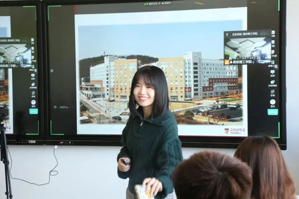 为了让现场的同学们更加了解高丽大学世宗校区的校园生活,许老师介绍了学校的文化体育馆、公共政策馆、科学技术馆、图书馆、国际馆、教室、运动场、宿舍等场所以及丰富多彩的学生活动,展现了高丽大学世宗校区独有的魅力。