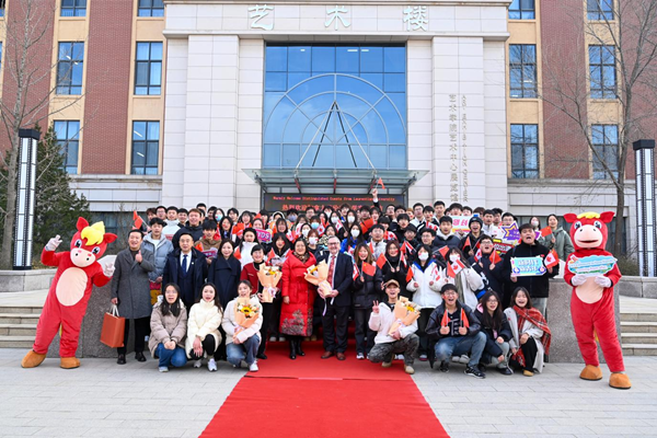 艺术学院学生在展厅门口列队迎接米歇尔·德洛姆博士一行,智能工程学院机器人送上欢迎歌曲《茉莉花》。米歇尔·德洛姆博士在艺术展厅参观了学生静态作品展和学生首饰制作,并收到学生亲手制作的礼物。米歇尔·德洛姆博士表示,燕理学子所创作的作品令他十分惊喜,并肯定了学生的动手能力和创造力。