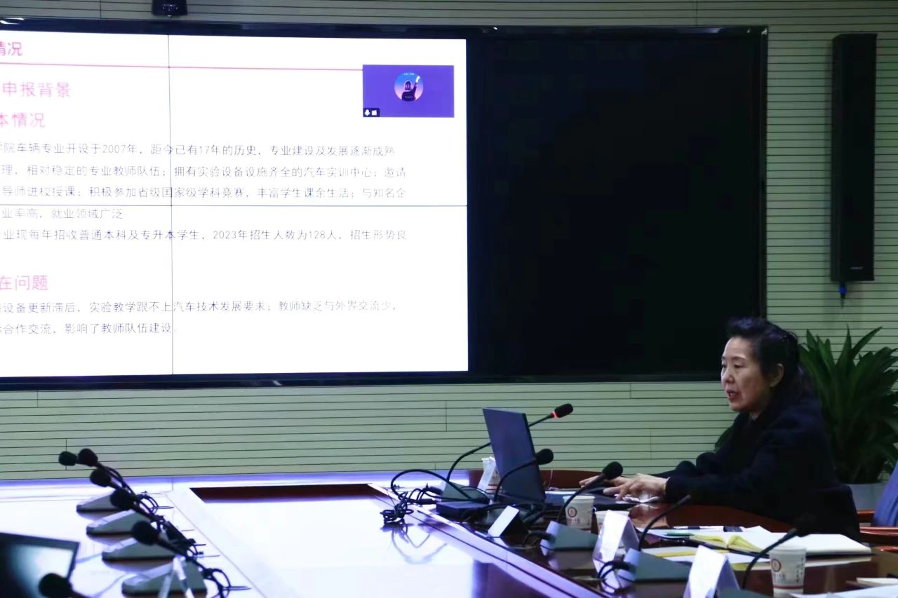 车辆工程专业祖炳洁教授代表项目组向专家组汇报了车辆工程专业的建设情况、项目申报情况,包括立项背景、工作基础、工作方案等。