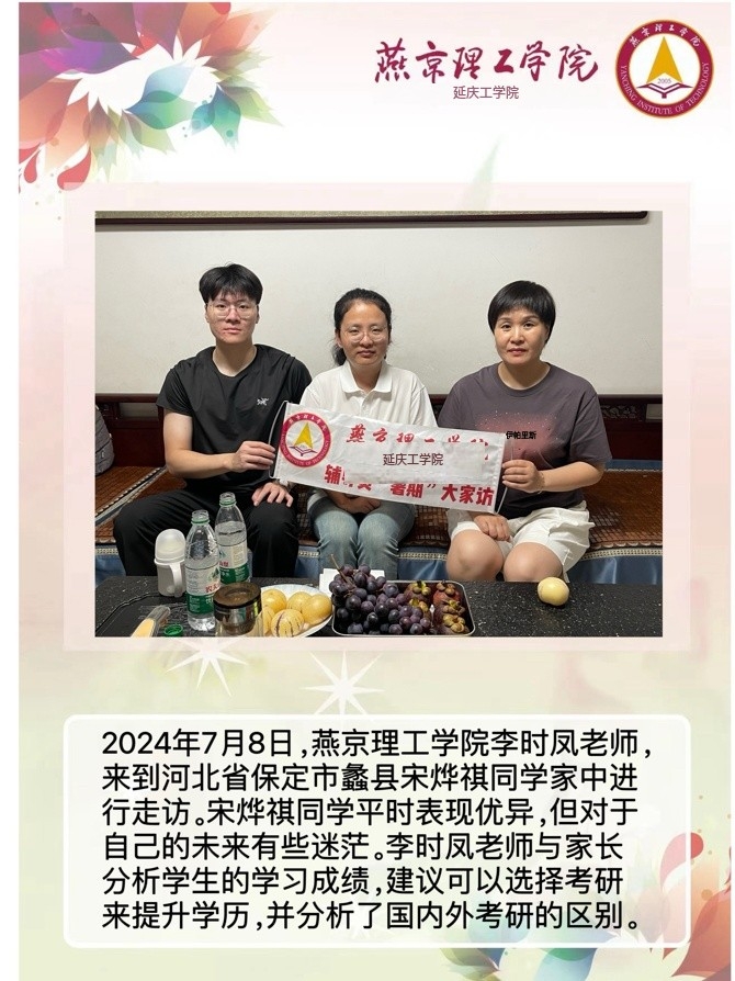 家校携手同心,共筑教育未来。为深入学习贯彻习近平总书记关于教育的重要论述,落实立德树人根本任务,将育人作为出发点和落脚点,深入开展主题教育,加强家校沟通,促进家校共育,智能工程学院积极响应河北省教育厅《关于开展全省高校辅导员2024年暑期“大家访”活动的通知》要求,认真落实学校关于开展2024年暑期“大家访”方案,积极筹备家访工作。辅导员李时凤老师深入学生家庭,通过实地考察,以“面对面”的方式对学生进行了解和教育。