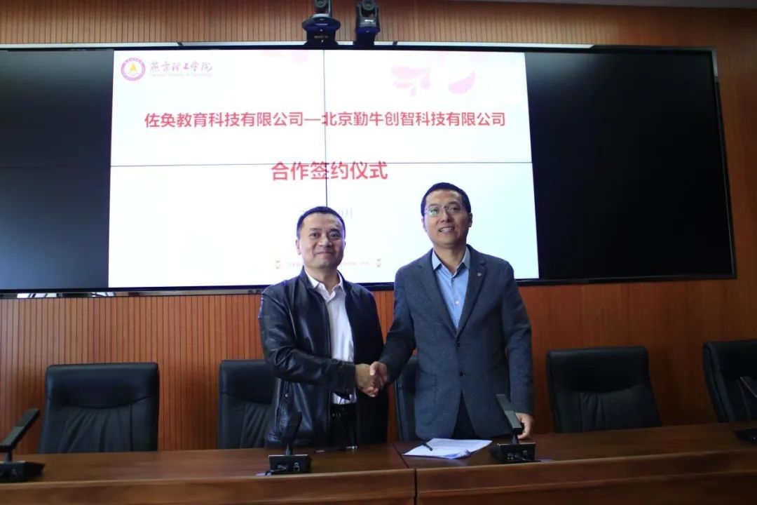 10月11日,佐奂教育科技有限公司(以下简称“佐奂教育”)与北京勤牛创智科技有限公司(以下简称“北京勤牛”)合作签约仪式在燕京理工学院智能制造产业学院成功举办。线下参会的嘉宾有:佐奂教育代表刘鹏飞老师、北京勤牛代表王总、智能制造产业学院王怀明教授、智能工程学院教师代表和学生代表。线上参会的嘉宾有:重庆城市科技学院、银川科技学院、武汉工程科技学院、西安工商学院、上海立达学院等5所高校的近300名师生。特邀中国矿业大学(北京)贾瑞清教授出席。仪式由智能工程学院副院长刘继超主持。
