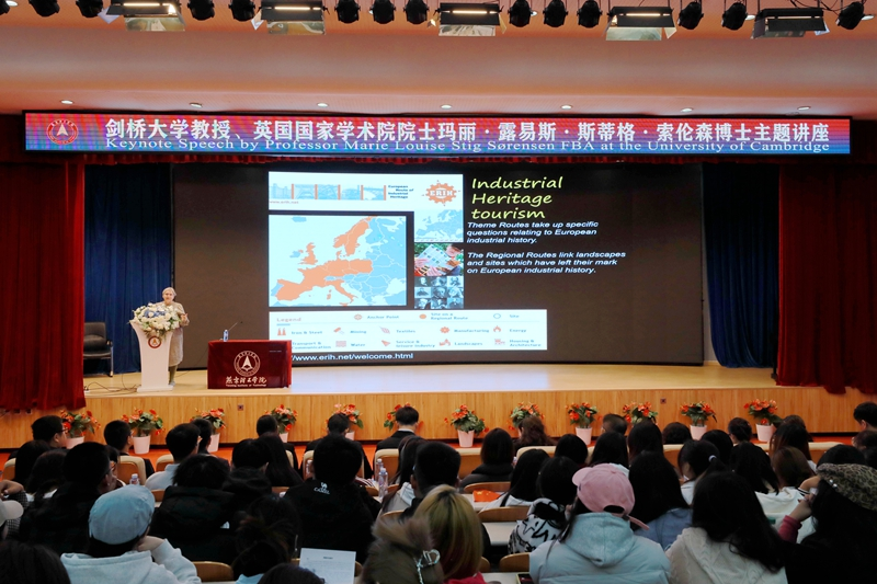 剑桥大学教授、英国国家学术院院士玛丽·露易斯·斯蒂格·索伦森博士在报告厅作主题讲座“为什么文化遗产有价值?”20日,剑桥大学教授、英国国家学术院院士玛丽·露易斯·斯蒂格·索伦森博士在报告厅作主题讲座。索伦森博士从文化遗产的经济价值、社会政治价值、文化价值三方面出发,通过案例研究、国际比较、角色分析等方式深入浅出的阐述了保护文化遗产的重要性。