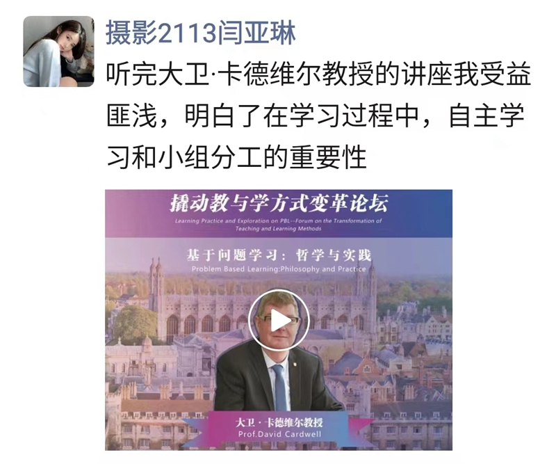 4月22日,剑桥大学战略与规划副校长、英国皇家工程院院士大卫·卡德韦尔教授应邀作“基于问题的学习:哲学与实践”主题演讲,现场引起与会嘉宾和师生的强烈共鸣。