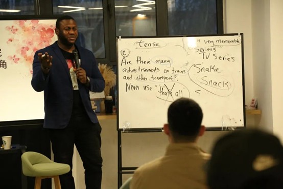 参与本次英语角的既有新同学也有老朋友,在正式开始之前,Lloyd询问了在座的每个同学的英文名字并亲切地和同学们打招呼。Lloyd询问了已参加过雅思考试的同学的成绩、未参加过雅思考试同学的目标成绩以及参加英语角的原因;有些学生回答说为了好玩,有些是为了学习新的知识。Lloyd和同学们的互动使现场的气氛活跃了起来!
