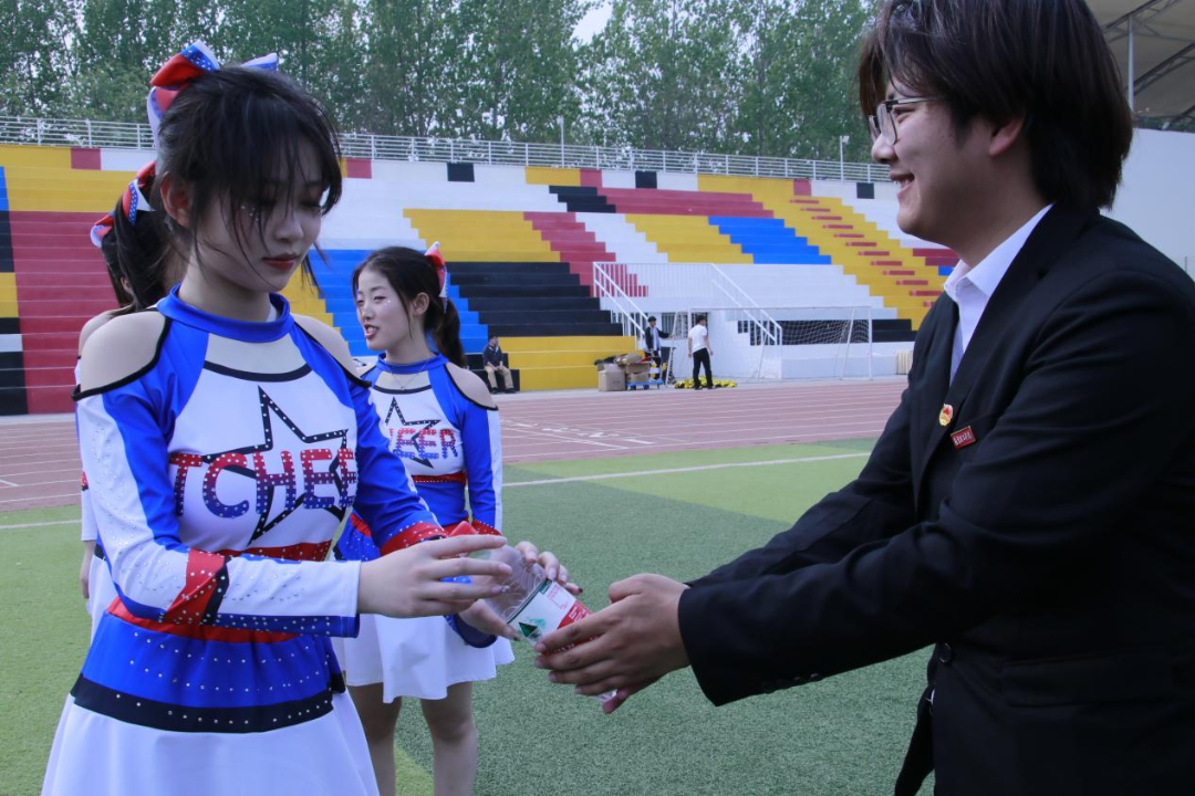 燕京理工学院国际海棠艺术文化节啦啦操比赛期间,智能工程学院学生第一党支部的同学们主动作为,设立“党员志愿服务站”,为参赛选手和观众提供送水服务,以实际行动践行初心使命,展现了新时代学生党员的责任与担当。