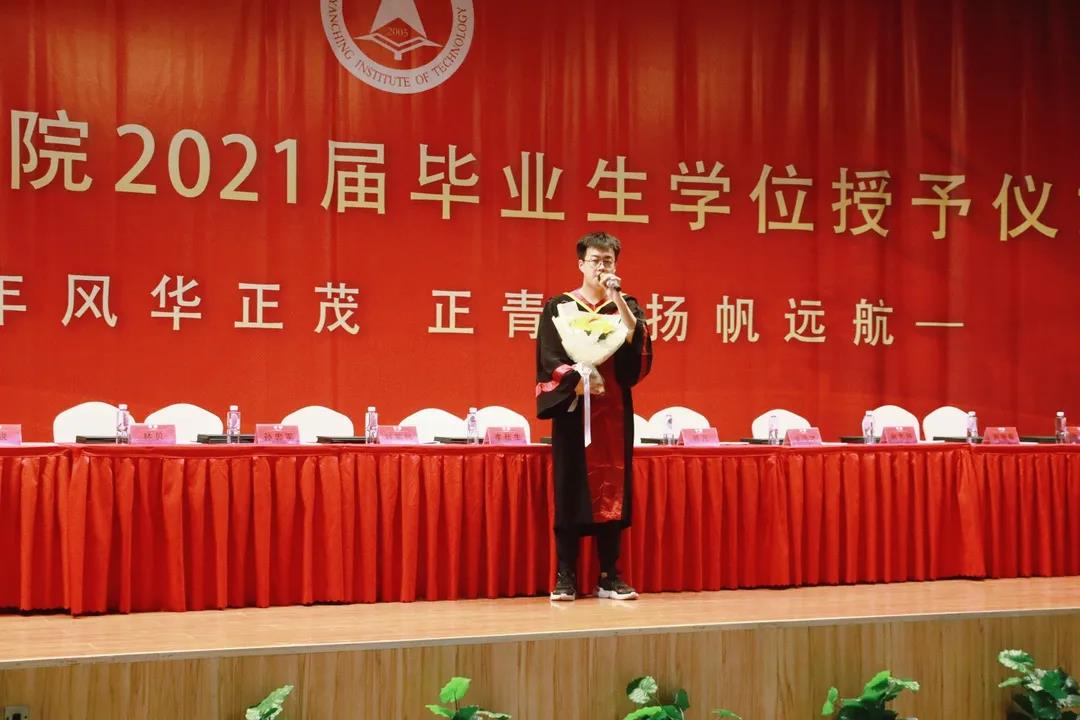 之后,优秀毕业生邹雅慧发言,光阴似箭,岁月如梭,四年燕理生活让邹雅慧同学收获的不只是知识,还有浓浓的师生情、同学情,在这分别的日子里万般不舍,在喉咙只剩下哽咽,邹雅慧同学的发言感染在场每一位即将毕业的同学。一句“燕理,我们爱你”说出了全体毕业生对母校的依依不舍和真诚的感谢。