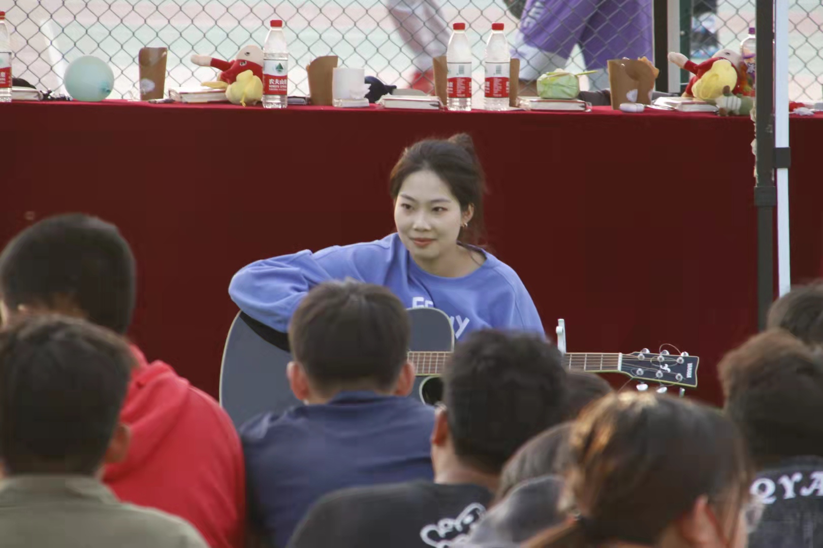 随着时间的流逝,活动在黄昏时刻接近尾声,在轻柔舒缓的背景音乐下,同学们席地而坐,交流感情的同时,欣赏文艺部同学带来的精彩歌曲表演:由杨卓奇 、菅帅强带来的《平凡之路》;由史千艺带来《回到夏天》;由孙铭泽、王百汇、常雨迪带来的《时间煮雨》;由姚紫萱带来的《better man》。