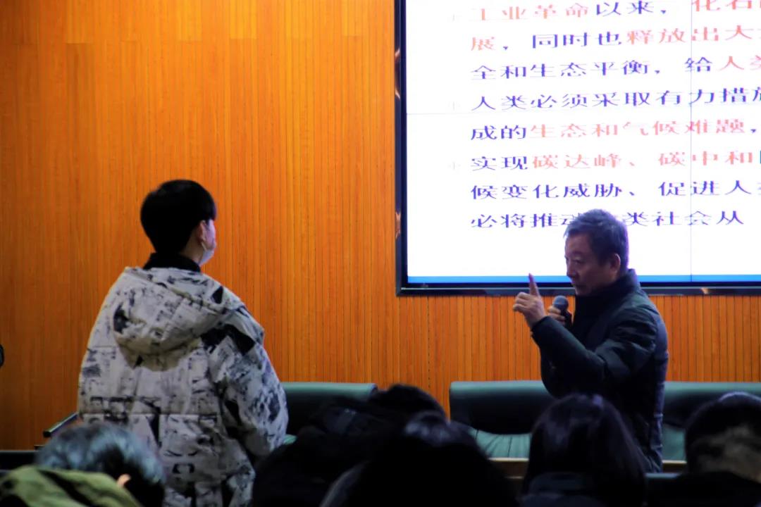 华北科技学院的马登军教授作了《碳达峰碳中和与环境保护》的主题分享。以环境问题的产生及社会的关注度展开,详细讲述了碳达峰碳中和的主要问题内容,并阐明了碳达峰碳中和的主要实现路径,使师生深层次的了解到碳达峰碳中和的相关知识。